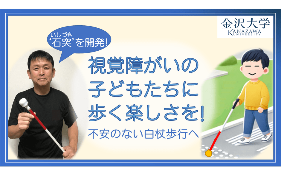 金沢大学は、新開発した石突(白杖の先端部分)を全国の盲学校の全ての児童生徒に届け、使ってもらうことを目的として、寄付額450万円を第一目標に「READYFOR」でのクラウドファンディングを2025年4月17日(木)まで実施します。