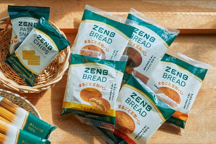 グルテンフリー※1で糖質オフ※2、さらに食物繊維・たんぱく質・ビタミンB1・鉄分などの必要な栄養もとれる※3パンやスナックなど、ZENBの人気商品を常温ストック可能。おいしくカラダにもいい、オフィスでの朝食、忙しい時の昼食、夕方の小腹満たしにぴったりです。