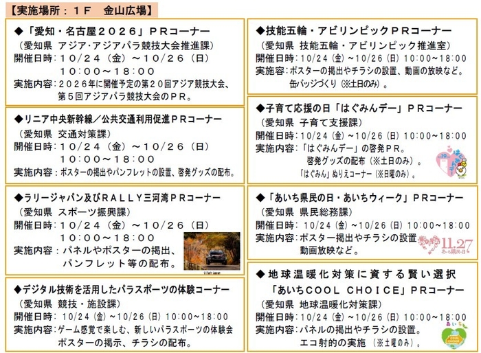 ②愛知県によるPRコーナーやワークショップの開催など