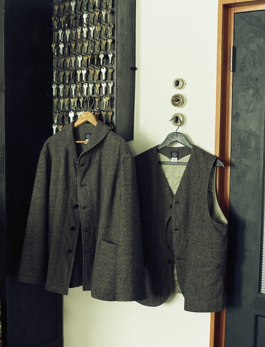 第5弾となる今回のコラボは、本企画のために特別に製作したSouthwickオリジナルのファブリックを使用した別注アイテム2型を発売いたします。3色の糸を組み合わせて織り上げたブリティッシュウールヘリンボーンは、ベージュ×グレーの深みある独特な色合いが特徴。上質ながらも気負わずに着用いただける一枚に仕上がりました。