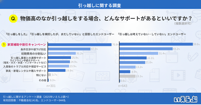 3.引っ越しサポート、家賃補助や割引キャンペーンを求めるエンドユーザーは70.8%という結果に