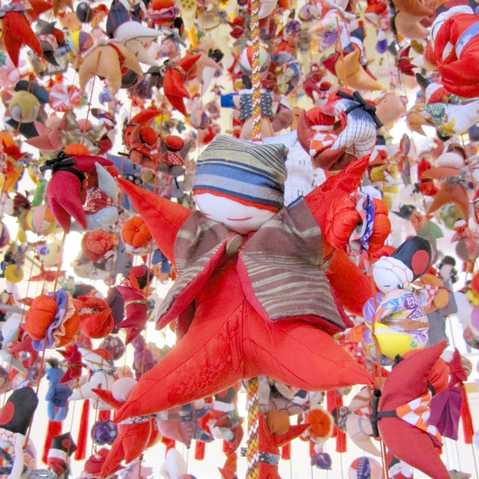 11年の東日本大震災の復興を祈願して新潟の十日町・津南町・湯沢町にそれぞれ1つずつ、3つの大きな【つるし雛】(雪国越後三大つるし雛)がディスプレイされております。
