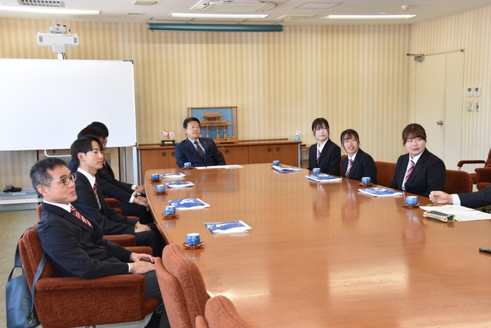 ヨット部は毎週土日に艇庫がある蒲郡市海陽町の海陽ヨットハーバーで練習に励んでおり、世界大会への出場は「蒲郡市をはじめ蒲郡の方々の支えがあったからこそ」とお礼の意味も込めての訪問で、ともにヨット部OBの杉浦啓之監督(1990年法学部2部卒)と海陽ヨットハーバーの杉浦啓泰所長(1989年法学部卒)も同席しました。