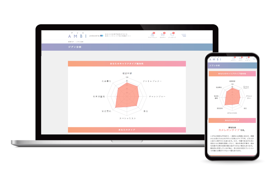 若手ハイキャリア向け転職サイト『AMBI』、 自分の仕事に対する価値観や職務適性を可視化する 新機能『ジブン分析』を搭載!