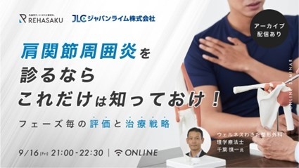 ジャパンライム株式会社(本社:東京都文京区、代表取締役:荻原 俊平)は株式会社リハサク(本社:東京都港区、代表取締役:近藤 慎也)と共同で、2022年9月よりセラピスト向けオンラインセミナーを定期開催いたします。