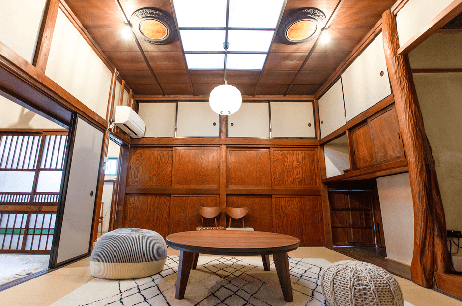 お試し移住で滞在する「抹香町ハウス」は大正~明治初期頃に建てられた元旅館をリノベーションした、一棟貸しの宿泊施設です。和の内装を活かしながら北欧テイストのインテリアでまとめたレトロモダンな内装になっています。場所は小田原駅から徒歩14分の住宅街の中にあります。