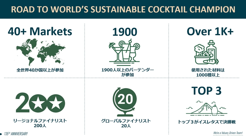 優勝者には、世界で最もサステナブルなバーテンダーの称号とトロフィー、賞金1万USドル。
