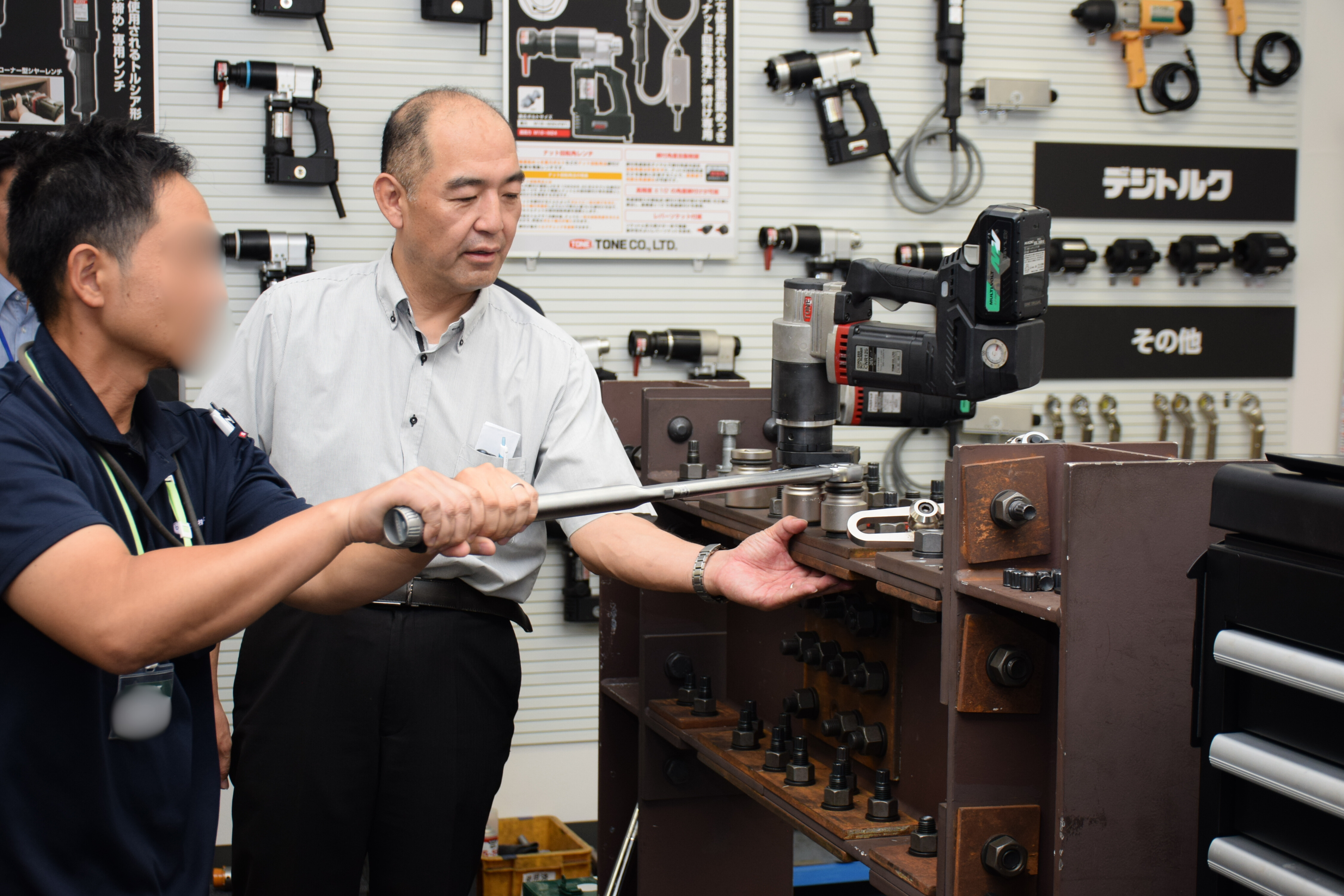 ショールーム見学では、TONE製の工具を実際に使用して締付け体験をしていただきました。