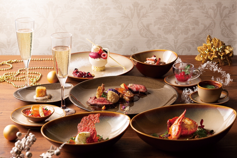 上海料理を中心に、中国全土の料理を総集する「王朝」では、クリスマスにふさわしい華やかなスペシャルコースをご用意しました。ランチには、紅白ソースのコントラストが美しい「海老のマヨネーズソースと白身魚のチリソース」や「骨付きバックリブのオーブン焼き 旬野菜添え」のほか、王朝特製杏仁豆腐などのデザートをビュッフェ形式でお楽しみいただけます。ディナーコースは、卵白の泡をふわっと聖夜の雪のようにかぶせた「蟹肉と干し貝柱の淡雪スープ」や、素材に合わせて厳選した10種のスパイスを使った「王朝特製スパイス香る大山鶏の燻製 花巻き添え」など、王朝ならではの創造性豊かなクリスマス限定料理8皿をご賞味ください。