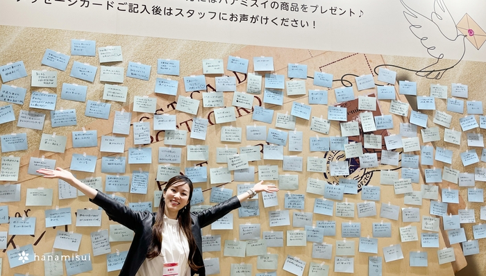 また、ブース来場者にはハナミスイの主力商品である腟洗浄器「インクリア」に向けてメッセージを募ったところ300件以上の様々なメッセージがあつまりました。