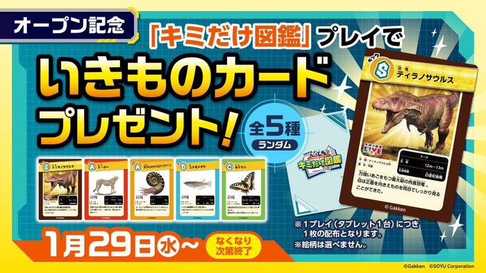 「キミだけ図鑑 プライムツリー赤池店」のオープンを記念して、「いきものカード」(ランダム全5種)をプレゼントいたします。
