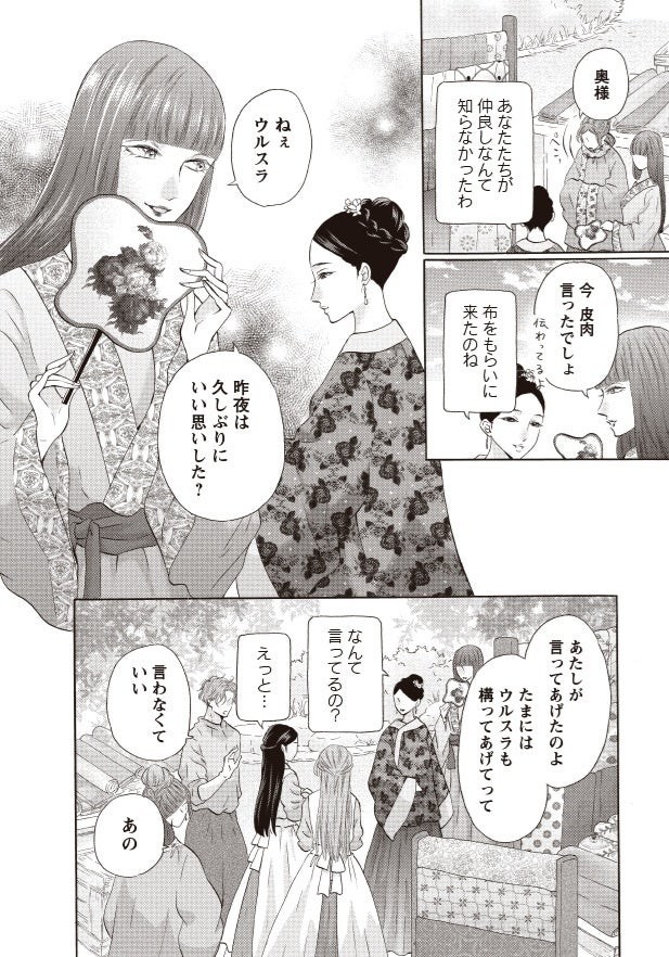 "奴隷"として連れ去られた異国の地・天川で、幼馴染の五平太と再会したドラ。「嫁にしたい」という真っ直ぐすぎる想いをぶつけられ…。一方、船長の妻・ウルスラと"愛人奴隷"であるカタリナとジャシンタの3人が一触即発の空気に!?