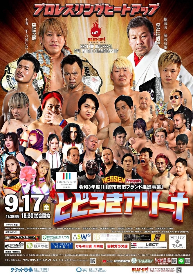 プロレスリング・ヒートアップ株式会社(所在地:神奈川県川崎市、代表:田村和宏)は、同社が運営するプロレス団体・HEAT-UPが、とどろきアリーナにて年間最大のビッグマッチを2021年9月17日に開催することをお知らせします。とどろきアリーナ大会は、2021年川崎市都市ブランド推進事業として認定され、障がい者支援、青少年育成チャリティー大会の集大成として行う予定でしたが、新型コロナウイルス感染拡大防止の観点から規模を縮小しての開催となります。その代わり、自宅でも観戦できるようツイキャスでのオンライン配信も実施します。