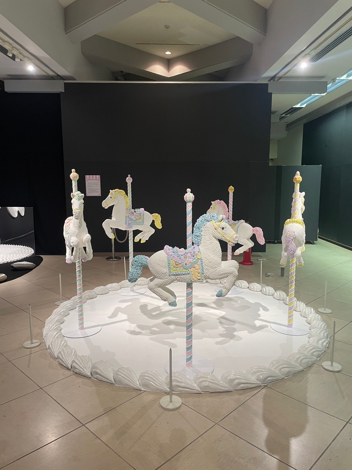 渡辺おさむは、樹脂などを材料に本物そっくりに作られた“スイーツ”を使い、デコレーションするスイーツデコの技術をアートに昇華させた現代美術作家です。本展では、思わず食べたくなるようなホイップクリームやマカロン、キャンディなどカラフルな“スイーツ”を用いて、3mのお菓子のメリーゴーラウンドや4m50cmのお菓子のドラゴン、全長25mのお菓子の水族館など、壮大なスケールの作品を展開します。また、プロの舞台照明チームにより、より作品の世界に没入できるような演出が随所に施されており、夢の世界へ迷い込んだような、圧倒的なファンタジー空間をお楽しみいただけます。