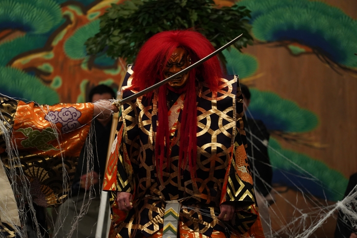能「土蜘蛛」は源頼光率いる鬼狩り部隊が、妖怪土蜘蛛を退治する物語です。妖怪土蜘蛛から次々と繰り出される蜘蛛の糸と頼光家臣団との大バトルが見ものです!