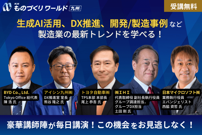 申込み受付中!】 トヨタ自動車/アイシン九州/IHI/日本マイクロソフト/BYD等が登壇!製造業の最新トレンドを学べる無料セミナーを開催 @マリンメッセ福岡