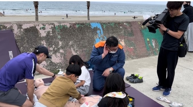 ブースでは、健康と環境保全を促す『発電エアロバイクでSDGsクイズ大会』を実施した他、協賛2年目となる今年は、新たな取り組みとして和歌山市消防局にご協力いただき、AED(自動体外式除細動器)の正しい使い方を教える『AED講習会』を実施しました。