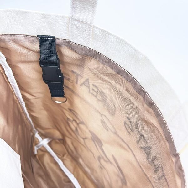 A4サイズも入る大き目なサイズ感にマチもついていて、しっかりとした見た目のバッグです。シンプルなデザインで、男女問わず、使いやすそうです。サイズ:38cm×35cm×9cm 素材:綿、ポリエステル
