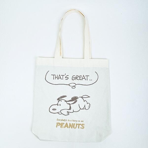 今回ご紹介するのは、シンプルで飾らないかわいさが定番キャラクター「スヌーピー」をモチーフにした生活アイテムをご紹介させていただきます。今回は、光沢のあるスヌーピーの刺しゅうがおしゃれなトートバッグです。