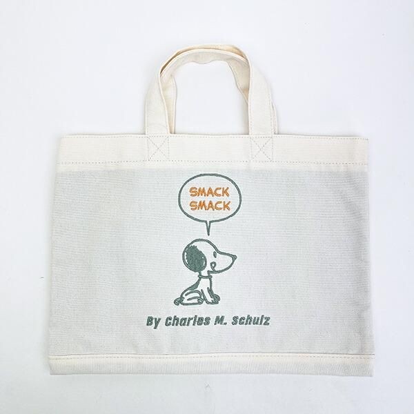 サイズ違いのバッグもございます。こちらは、スヌーピー ミニレッスントートバッグ ホワイトです。