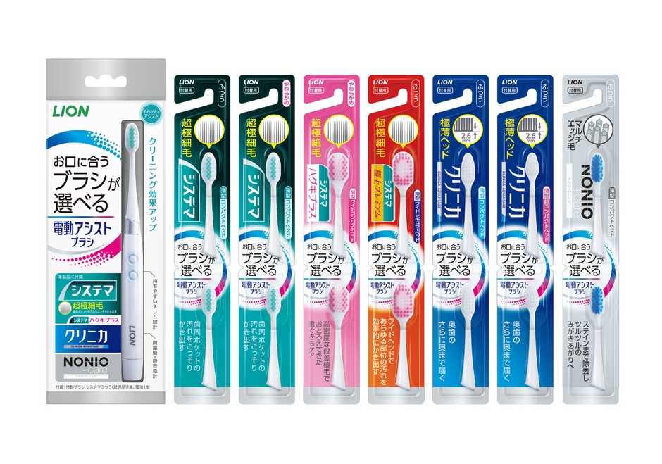 『システマ』『クリニカ』『NONIO』の各ブランドから お口に合わせて付替ブラシが選べる 『LION電動アシストブラシ』新発売