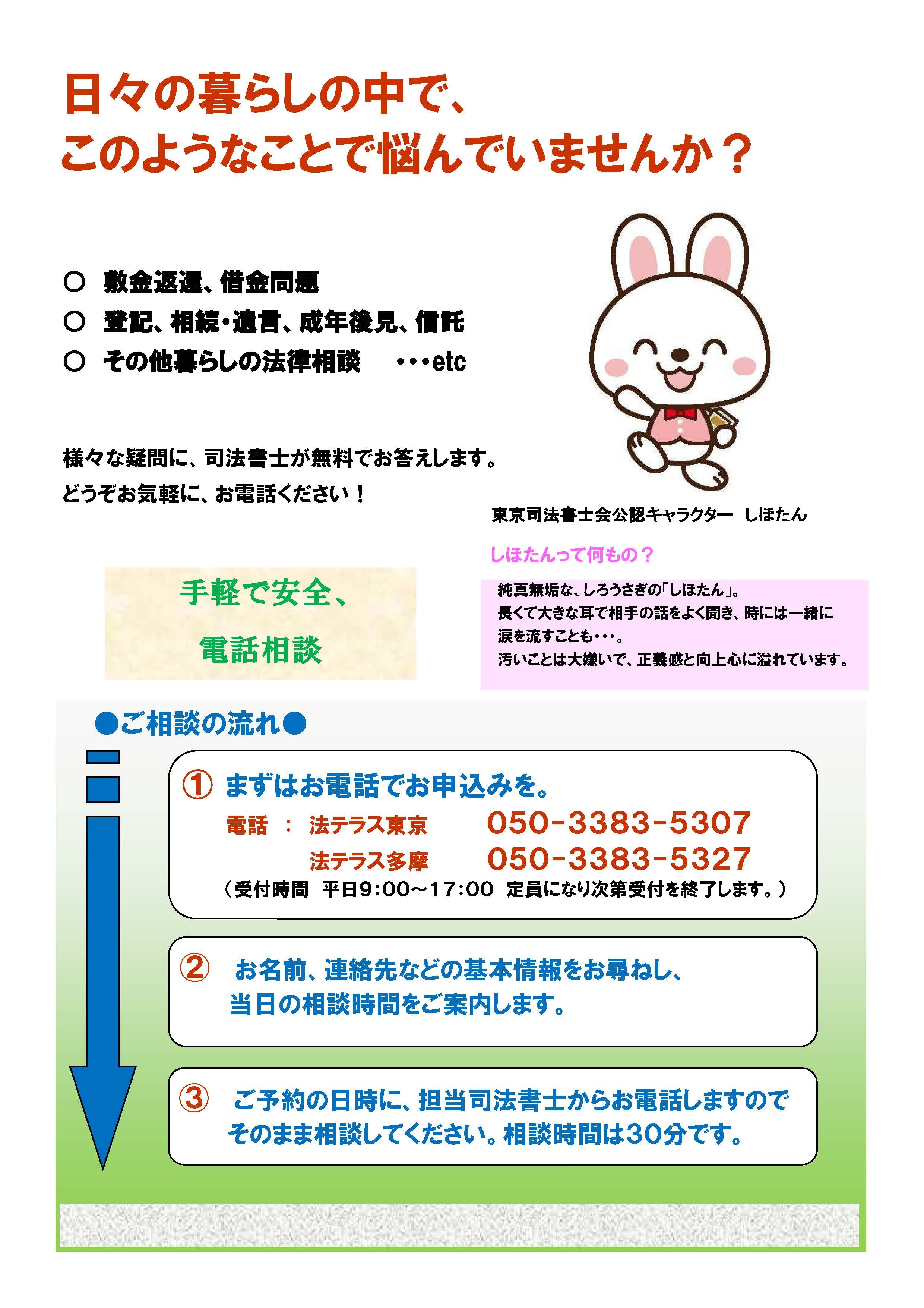 電話番号 :法テラス東京(新宿):050-3383-5307