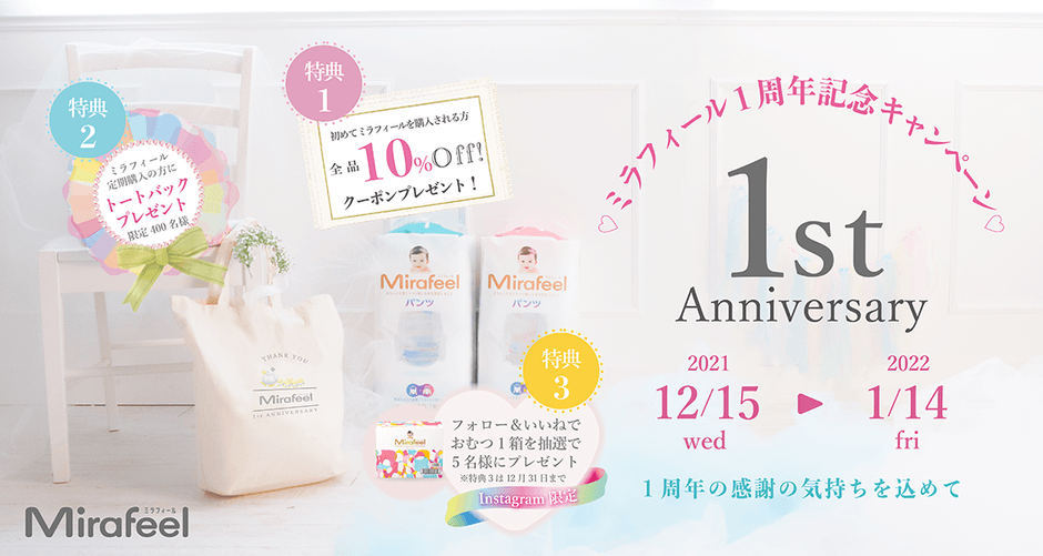 赤ちゃんを思う、すべての人の願いから生まれたMirafeelシリーズは2021年12月15日に販売開始から1周年を迎える事ができました。