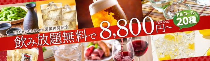 温かいお声を寄せ、再開を待ち望んでくださるお客様のために、料理とアルコールの魅力をパワーアップし、お得な料金でお迎えさせていただきます。皆様のご予約を心よりお待ち申し上げております。