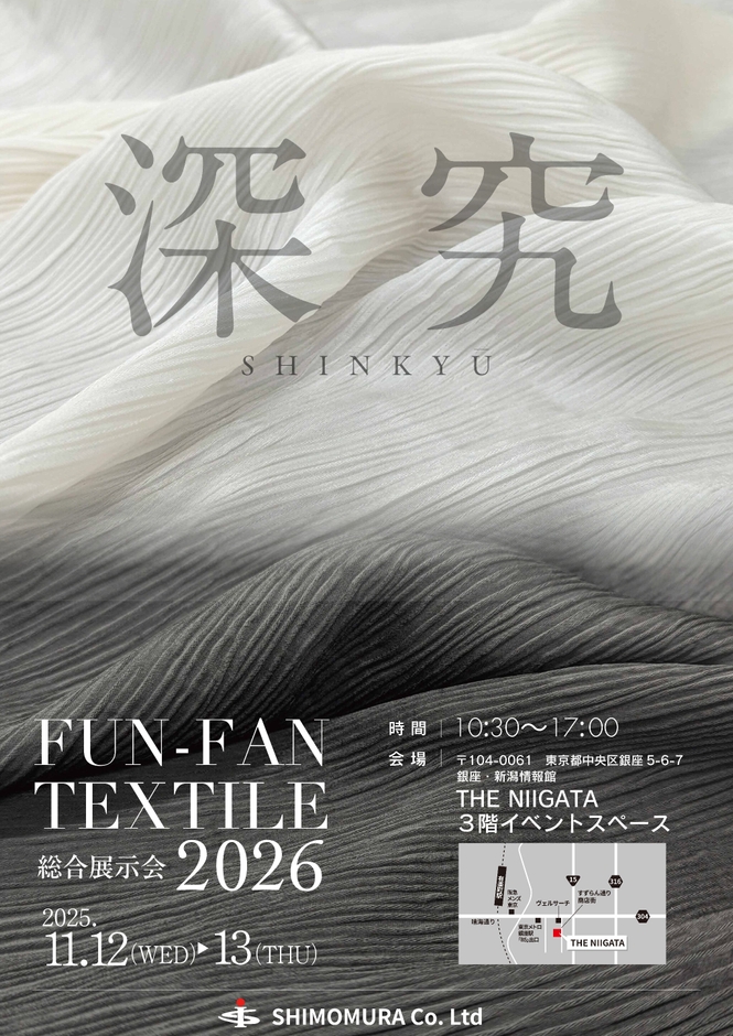 株式会社シモムラ(本社:石川県小松市、代表取締役社長:西山 成幸)は、2025年11月12日(水)・13日(木)の2日間、東京都中央区銀座の「THE NIIGATA 3階 イベントスペース」にて、恒例の生地展示会を開催いたします。
