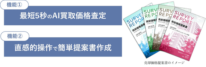2021年7月に「KAITRYプラットフォーム」を応用拡大しAI価格査定技術を一般ユーザー向けたポータルサイト『KAITRY(https://kaitry.com/)』をリリースしたところ、不動産仲介会社向けに同様のサービスを開発・提供してほしいと要望が寄せられました。加えて、特に中小規模の不動産仲介会社において、売却価格提案書の自動作成ニーズが高いことがわかり、本サービスの開発に至りました。