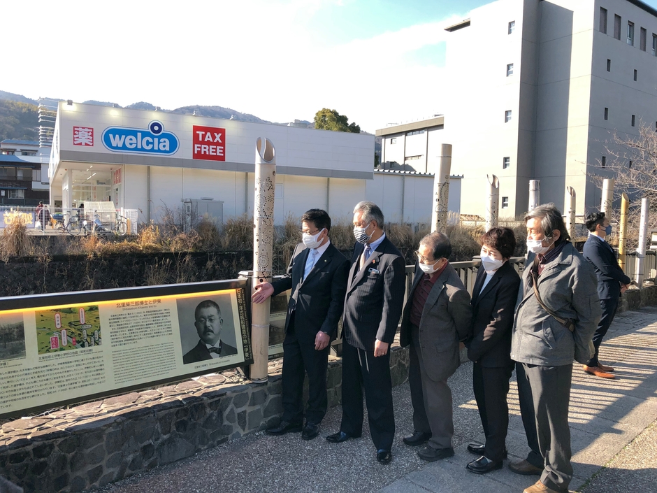 伊東市(庁舎:静岡県伊東市、市長:小野 達也)は、市民団体である「松川周辺地区まちづくり推進協議会」にご協力いただき、北里柴三郎の功績を讃えた看板を製作し、通学橋付近の松川遊歩道に設置しました。