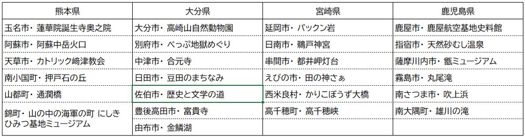 第1弾 公開市町村一覧(市町村名・観光地名称[表面掲載])