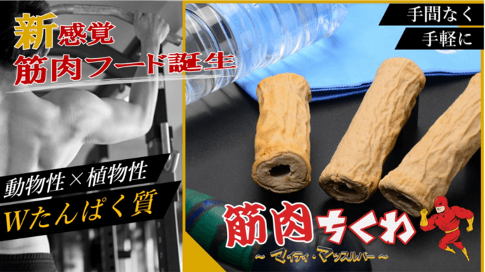 手軽にWたんぱく質!「筋肉ちくわ マイティ・マッスルバー」 9月7日に一般販売開始! ~Makuakeで目標率150%達成&予約販売数1,500本を記録~