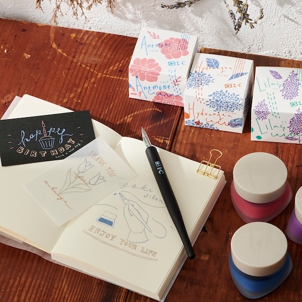 今回アイシーは姉妹ブランドのコピックとともにブースを展開し、発売依頼ご好評をいただいている人気の顔料インク「てがき時間インク」の販売やインクのお試しコーナーを展開いたします。