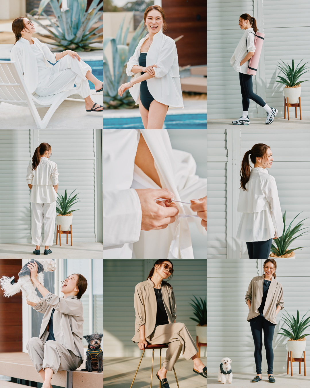 大日方久美子氏のライフスタイル×水陸両用の機能を融合して、「デイリー」「ビーチ」「プール」「サウナ」「スポーツ」「ヨガ」のシーンで着用できる、唯一無二で特別な「超高機能水陸両用ウェア」となっています!