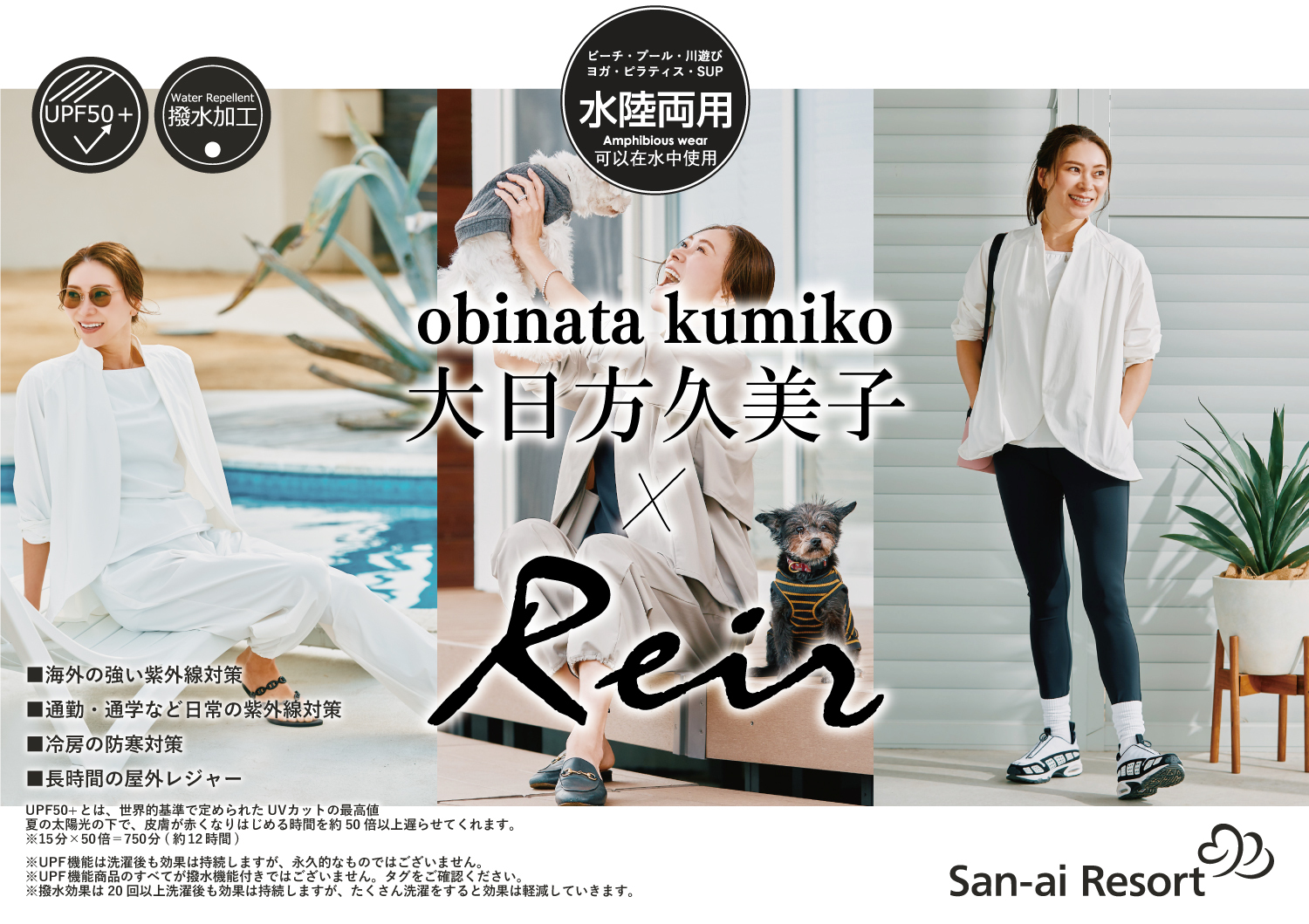 UVカット・はっ水・遮熱・接触冷感「超高機能水陸両用ウェア」 「大日方久美子×Reir」全4型 4月28日(火)San-ai Resort公式WEB SHOPにて発売!