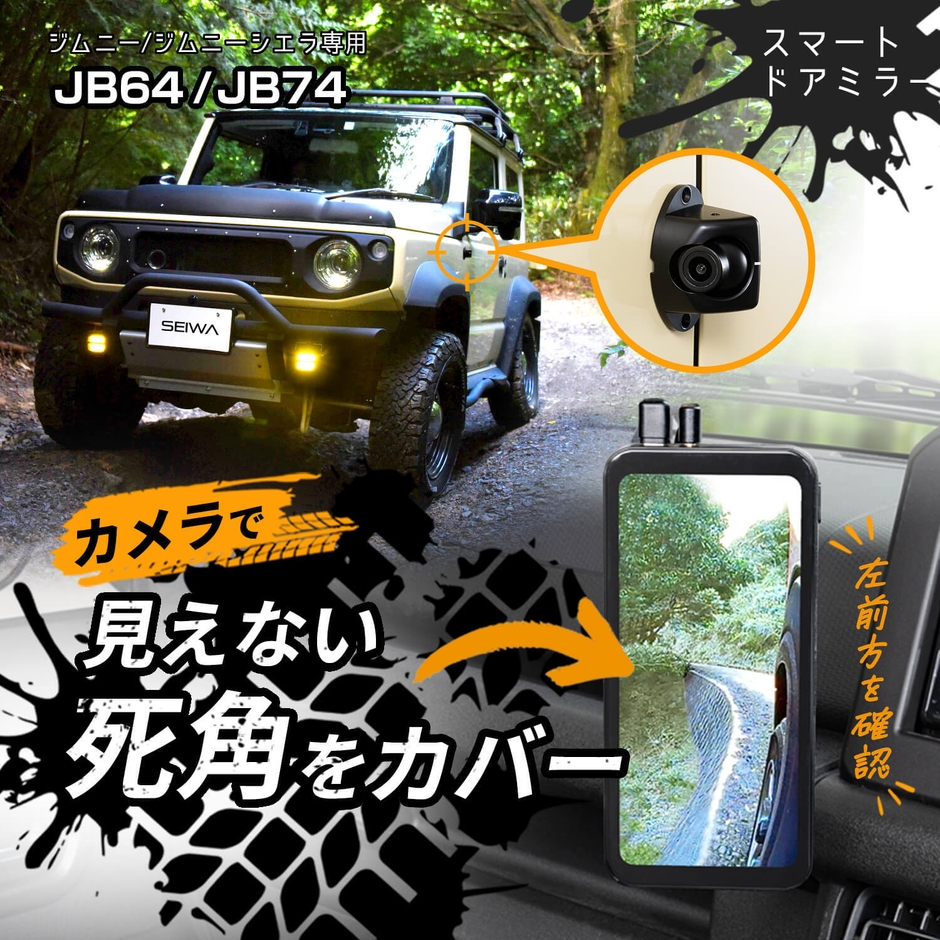 ●オフロードでも安心のスズキ ジムニー&シエラ(JB64/JB74)専用のデジタルサイドミラーで、見えない死角をカバーします。