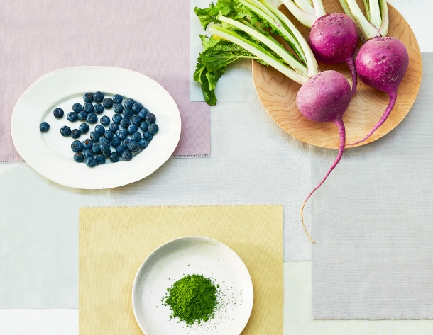「FOOD TEXTILE」が廃棄予定の野菜やフルーツなどより抽出した500色の染料から、unicoがカラーをセレクト。