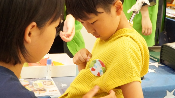 自然由来の豊かな質感と色とりどりの阿波和紙を台紙にちぎって貼り、その上にオリジナルの夢や願い事を短冊に書いたり、缶バッチにして楽しむ体験。