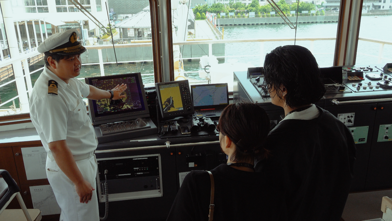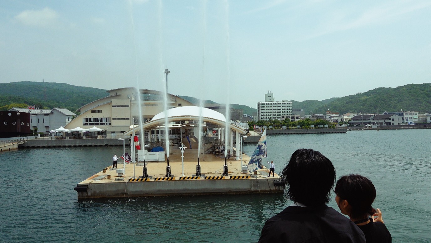 桟橋スタッフによるお見送りセレモニーを実施。爽快なウォータースプラッシュ演出や、期間限定の応援旗などで、皆様の「新しい航海の始まり」を応援します。
