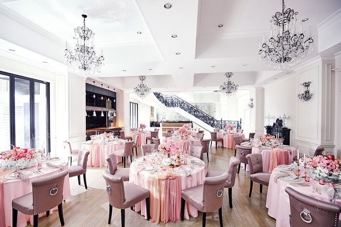 品格とチャーミングを併せ持つデザイン。NYにあるグラマシーパークをモチーフに、センスと品格を持ち合わせたお嬢様をイメージした邸宅です。ホワイエやバーカウンターも兼ね備え、特別なカクテルでゲストをお出迎えできる設備も完備。優雅に螺旋階段からも登場でき、花嫁の理想を詰め込んだ夢のような披露宴会場です。