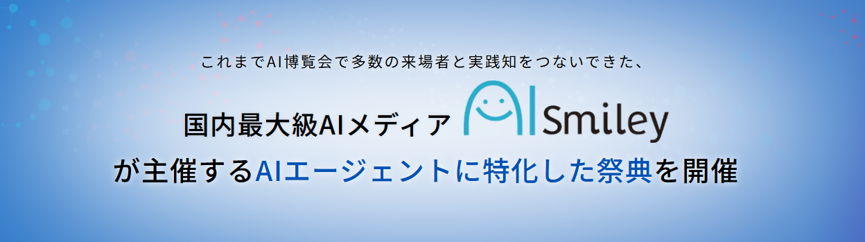 AIポータルメディア「AIsmiley」を運営するアイスマイリー(東京都渋谷区、代表取締役:板羽晃司)は、2025年12月11日(木)・12日(金)に「AIエージェント博 by AI博覧会」を開催します。