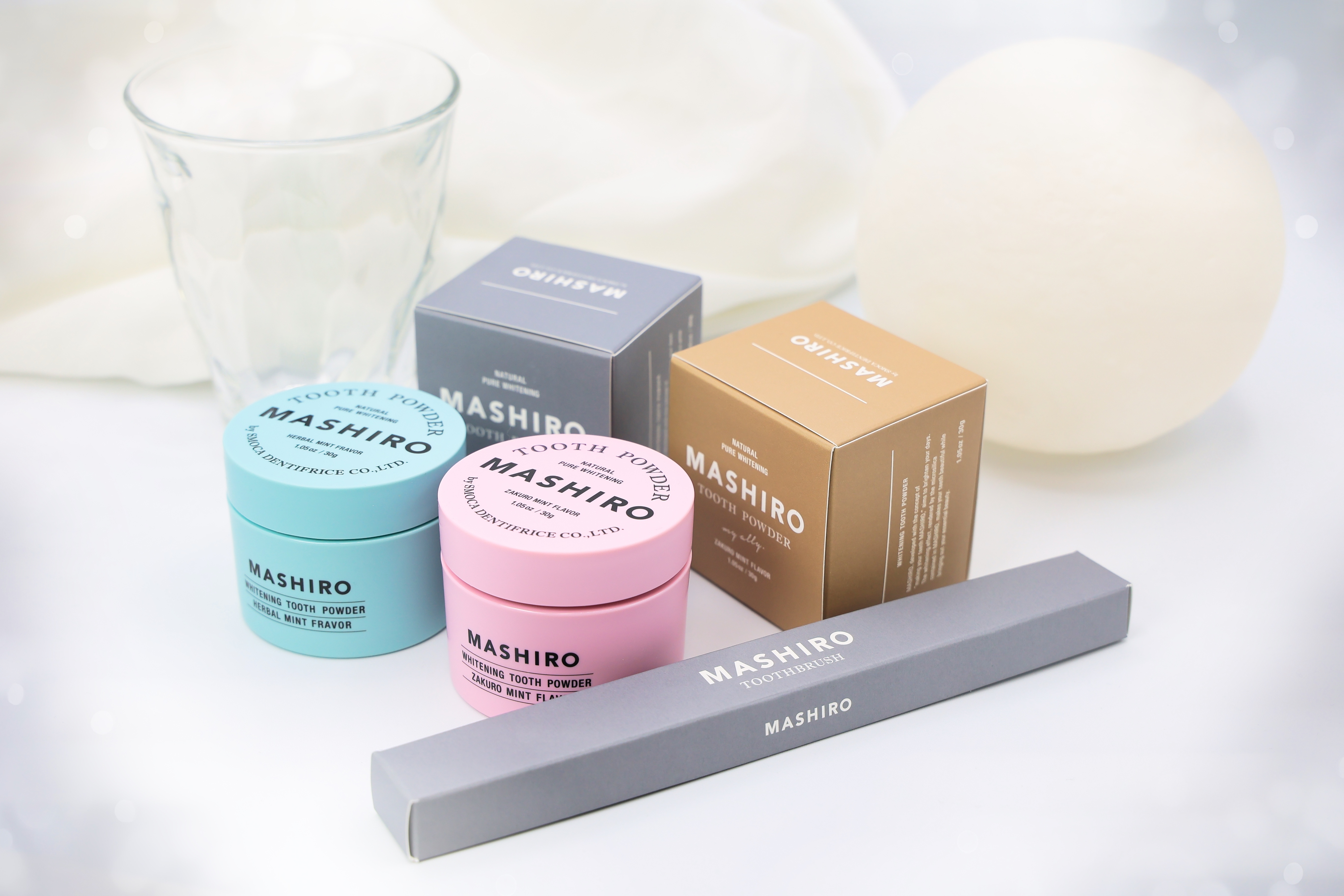 MASHIROは、これまでのホワイトニングとは異なり、歯の白さと、歯の健康の両立を考えた粉歯磨き粉です。