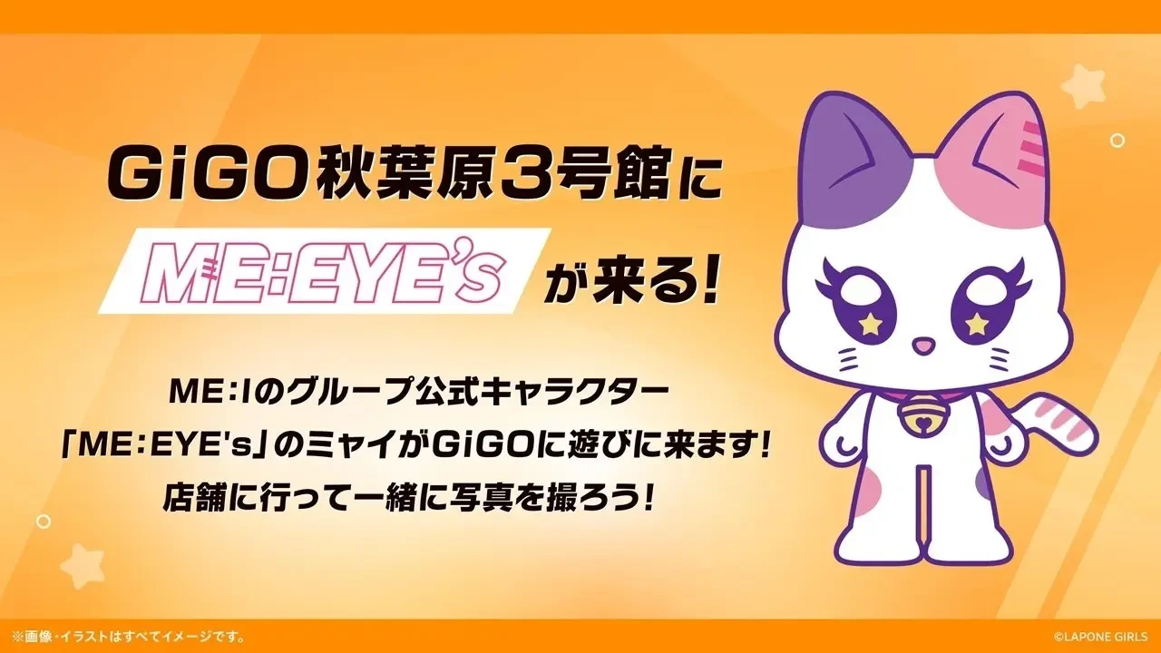 GiGO秋葉原3号館に、ME:Iのグループ公式キャラクター「ME:EYE‘s」のミャイが登場します。