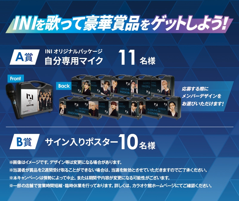 【A賞】INIオリジナルパッケージカラオケ館自分専用マイク…計11名様(メンバー別デザイン×11種)