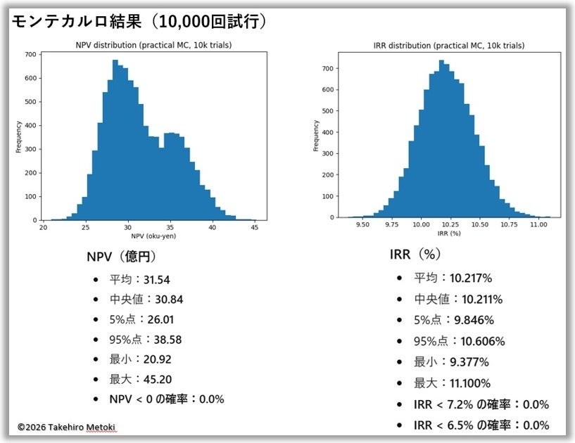 さらに、生成AIを使えば「モンテカルロ・シミュレーション」などの高度なシミュレーション分析も容易に実行できます。これは少しずつ条件を変えながら1~2万回のシミュレーションを行うもので、例えば20年スパンの設備投資計画を検討する場合でも、失敗する可能性が極めて低いことがシミュレーションから導き出されれば判断を下しやすくなります。