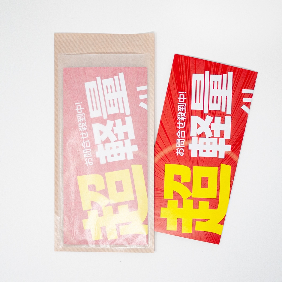 - 片面すべてにグラシン紙を使用することで、中身全体が見え、開封率の向上が期待できます