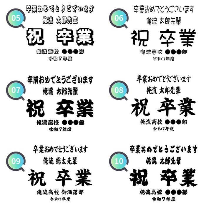 中央の最も大きな文字は、9色のカラーバリエーションをご用意。