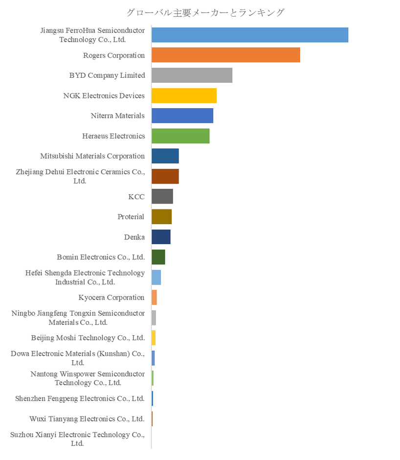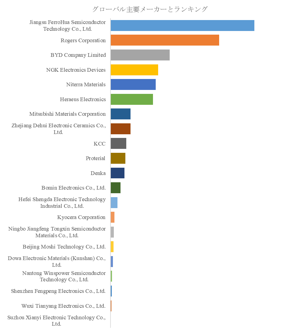 QYResearchのトップ企業研究センターによると、AMBセラミック基板の世界的な主要製造業者として、Jiangsu FerroHua Semiconductor Technology Co., Ltd.、Rogers Corporation、BYD Company Limited、NGK Electronics Devices、Niterra Materials、Heraeus Electronics、Mitsubishi Materials Corporation、Zhejiang Dehui Electronic Ceramics Co., Ltd.、KCC、Proterialが挙げられる。2025年にトップ5が売上ベースで約70.0%、トップ10が約88.0%の市場シェアを持つとされ、競争は上位集中型である。上位集中の市場では、製品を作れるかどうか以上に、量産の歩留まり設計、品質認定への対応力、監査に耐えるトレーサビリティ、変更管理の厳格さといった運用能力が参入障壁になる。加えて、主要プレイヤーが顧客側の検収条件や品質要求の事実上の基準になりやすく、後発は単なる同等スペックではなく、同等の運用品質を示さなければ取引機会を得にくい。結果として、この市場の競争は、単価ではなく信頼性と供給設計で差が付く構造になりやすいのである。