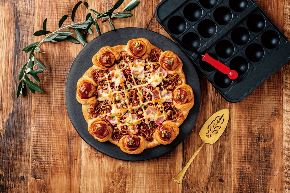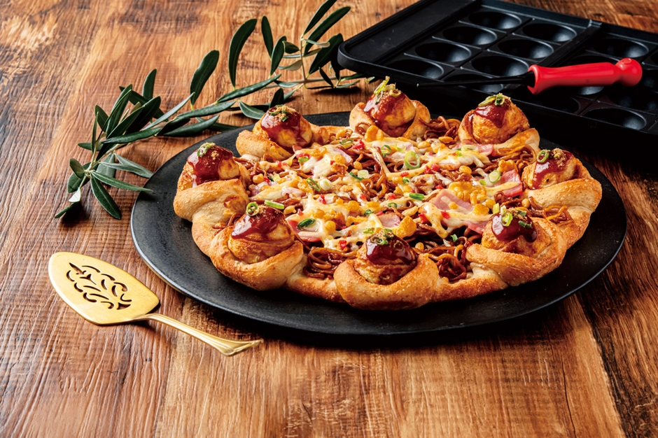 エッジにタコヤキ!?ボリューム満点の大満足ピザ 「タコヤキヤキソバピザ」を発売
